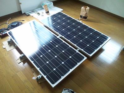 昼間の留守の時間帯に電気をソーラーパネルで発電してバッテリーに蓄え、夜に居間の照明とTVなどを 2、3時間使えればいいかな~