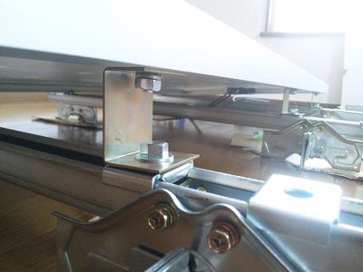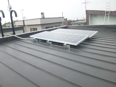 屋根に設置するため風に飛ばされ無いようにしなくてはいけ無いので、非常に悩みましたが下のようにして設置することにしました。